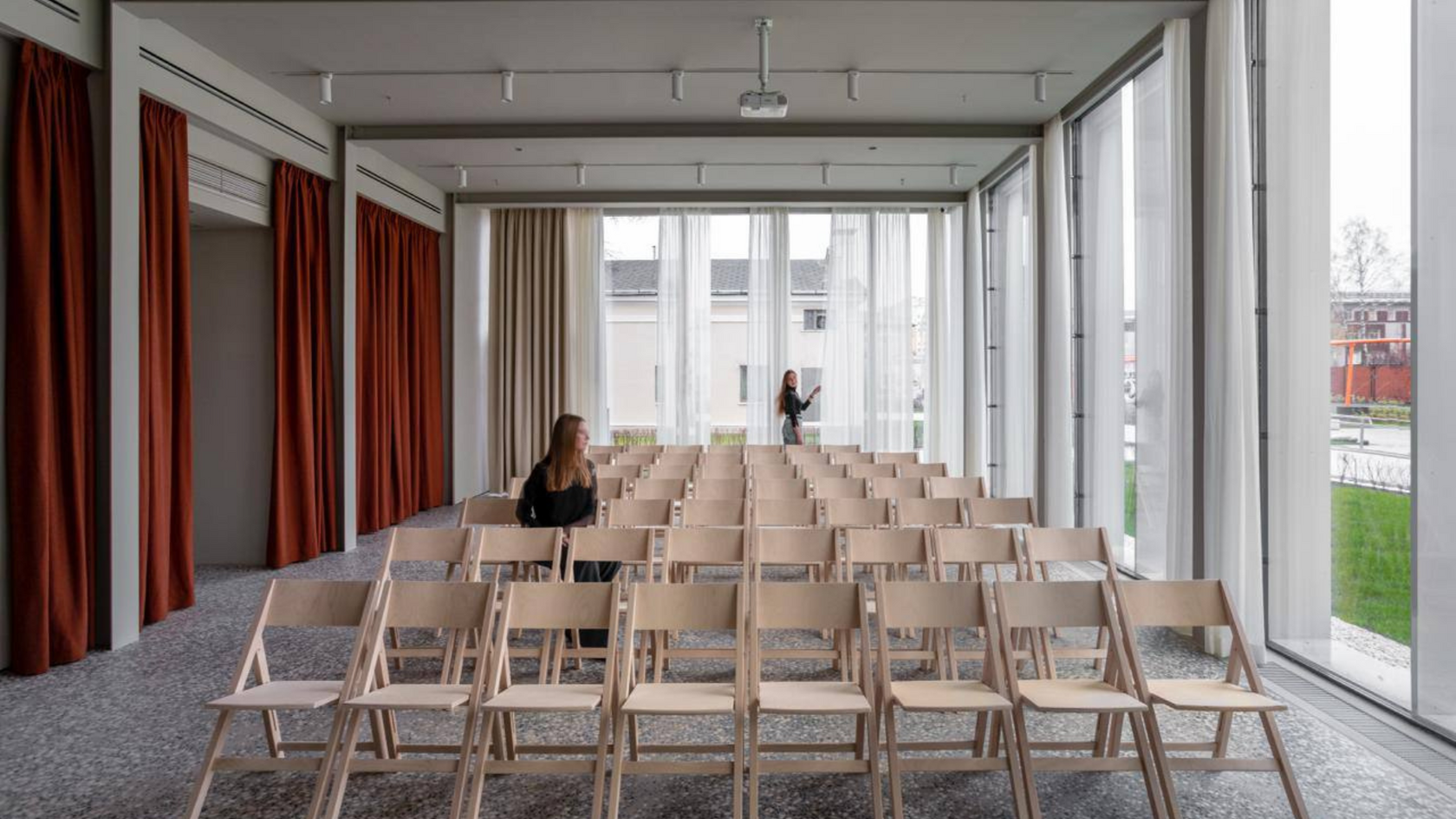 Павильон «Животноводство» 1954 года на территории Рязанской ВДНХ с восстановленным историческим обликом получил и новую функцию, став современным городским пространством, где можно работать, отдыхать и вдохновляться. Здесь создали читальный коворкинг с антресолью и зал для лекций, выставок и кинопоказов.
