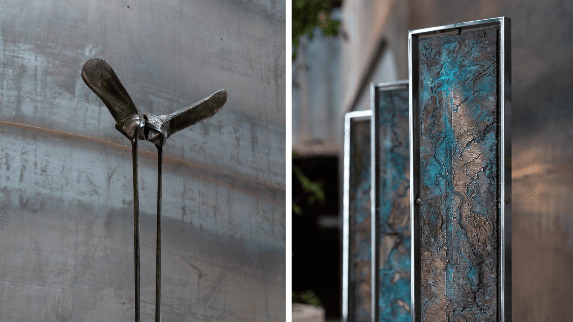 На выставке представлены работы, созданные методами чеканки, выпиловки. Металл требует усилий, жара, темноты, работа с ним связана с превозмоганием, хтоничной энергией, которую можно не только чувствовать, но и использовать как художественную силу.