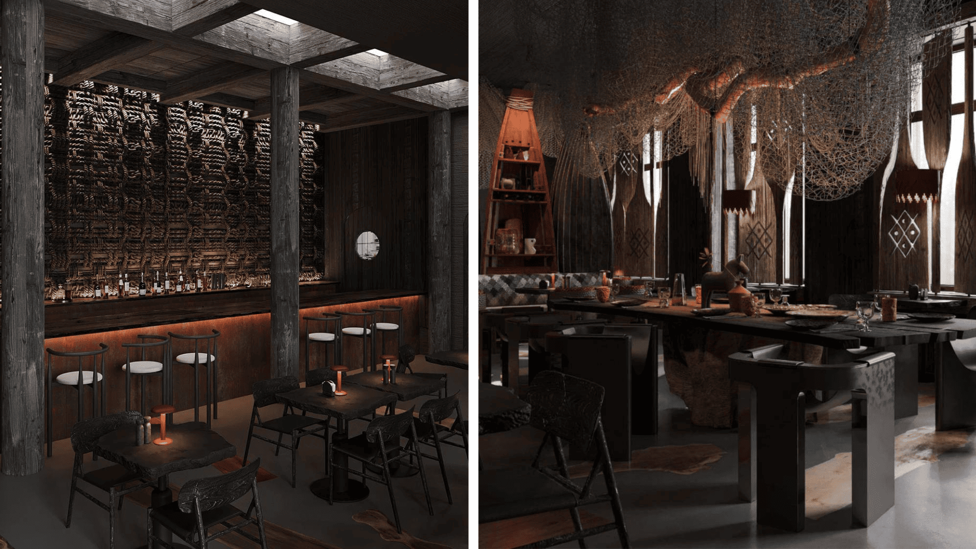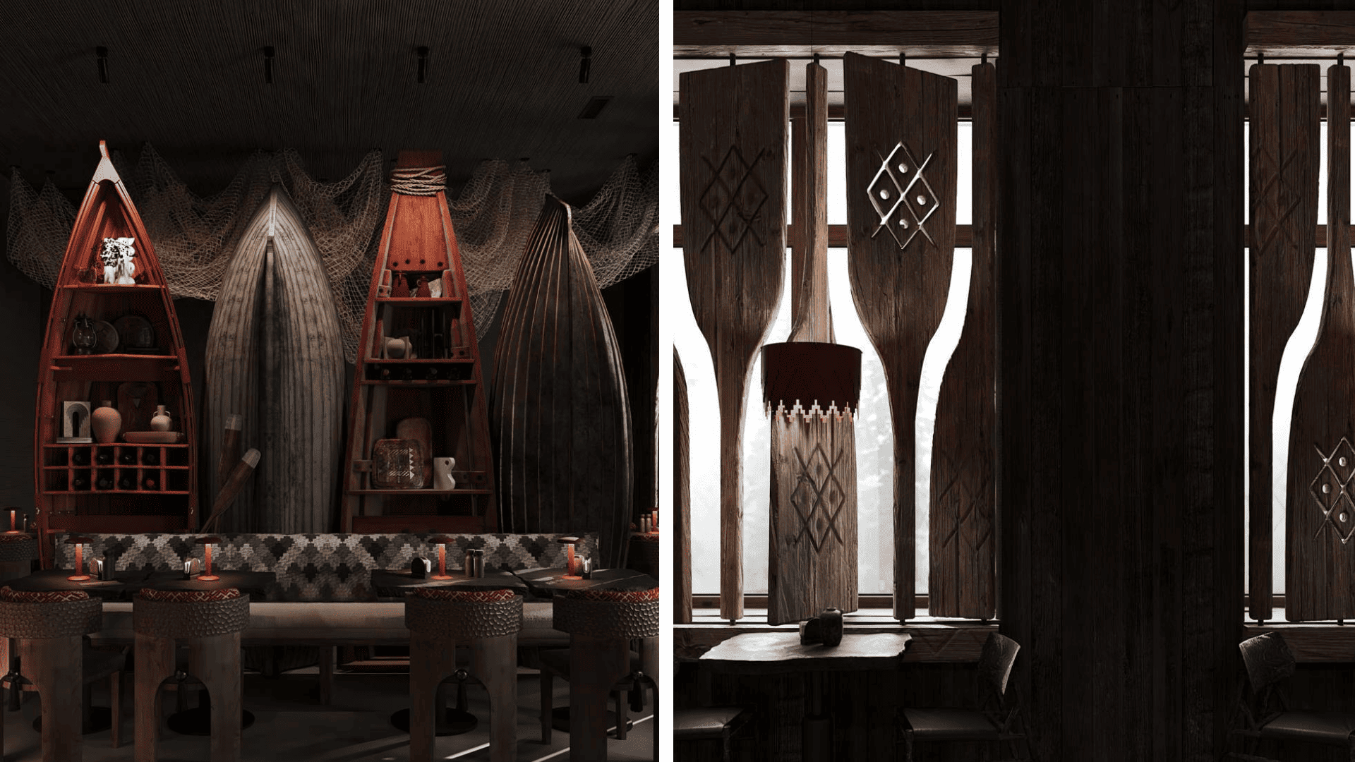 Интерьер ресторана создан с использованием натуральных материалов – дерева, камня, льна – чтобы передать дух суровой, но прекрасной северной природы. В концепцию легла метафора перехода, причала, как символа грани между уютным берегом с теплым очагом и холодных бурных вод.