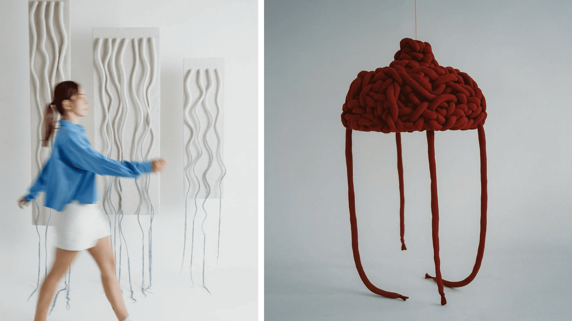 - Tangle - текстильные скульптуры в виде панно и светильников;