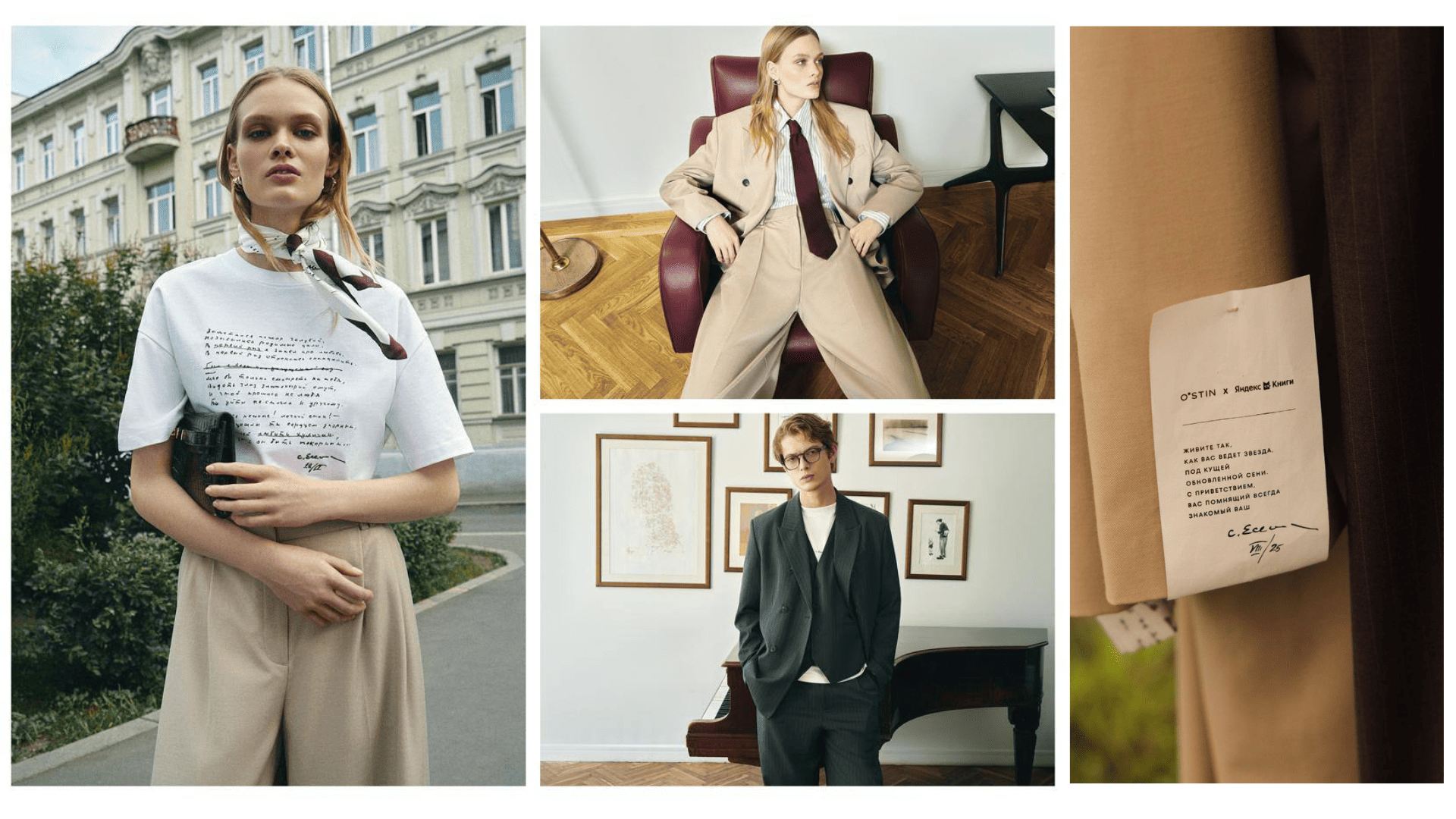 Событию посвящена лимитированная коллекция O’STIN х Яндекс Книги, вдохновлённая стилем и поэзией Сергея Есенина: на манжетах рубашек – вышитые строки из «Письма к женщине», а на подкладке тренча – автограф поэта.