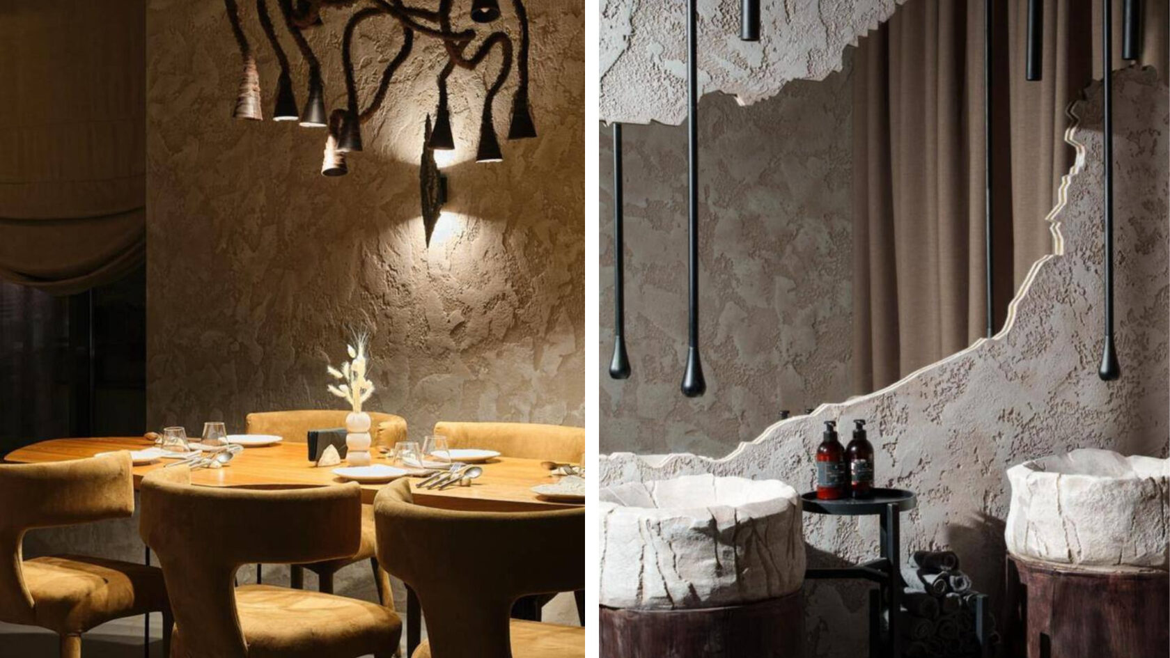 Интерьер ресторана создавался не только дизайнерами, но и руками причастных: от выбора досок старинных зданий и заборов для потолка до сосновых шишек, что вы увидите как будто под водой – во всём нашла свое отражение любовь к делу.