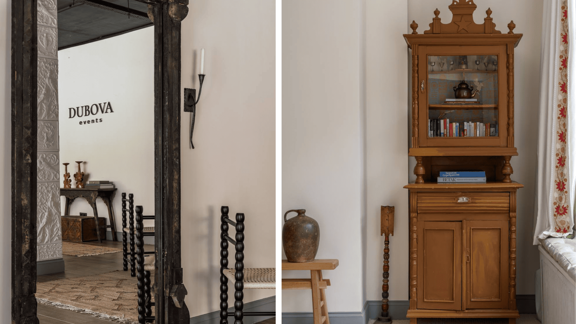 Оформление офиса с русскими акцентами. Чтобы освежить интерьер с массивными формами Дарья Соболева добавила в него несколько акцентных предметов современного российского дизайна.
